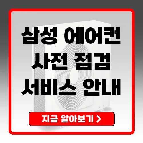 [2] Samsung Newsroom - 삼성전자서비스, 여름 대비 '에어컨 사전점검 서비스' 시행 (https://news.samsung.com/kr/%EC%82%BC%EC%84%B1%EC%A0%84%EC%9E%90%EC%84%9C%EB%B9%84%EC%8A%A4-%EC%97%AC%EB%A6%84-%EB%8C%80%EB%B9%84-%EC%97%90%EC%96%B4%EC%BB%A8-%EC%82%AC%EC%A0%84%EC%A0%90%EA%B2%80-%EC%84%9C%EB%B9%84%EC%8A%A4-4)