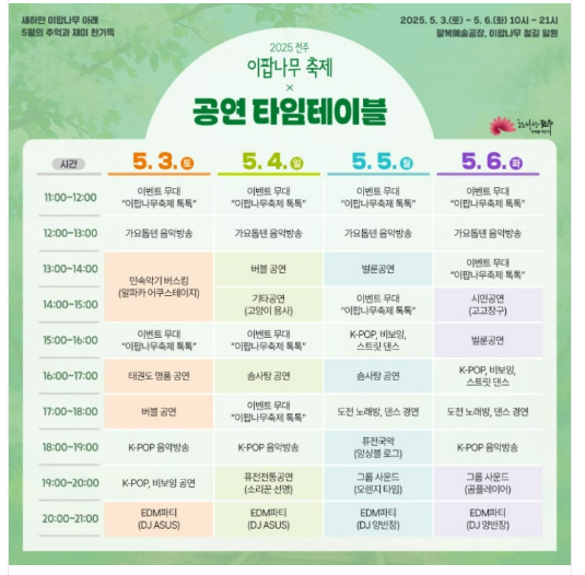 2. 2025 전주 이팝나무 축제 일정과 장소