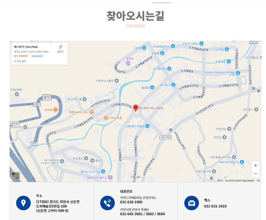 | 장소 | 이천도자예술마을(예스파크), 사기막골 도예촌 |